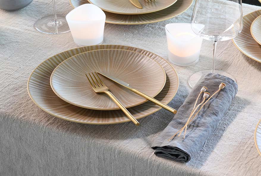 - Kontrast durch Textur: Ich kombiniere glattes Glas mit rauem Ton, glatte Baumwolle mit grobem Leinen.